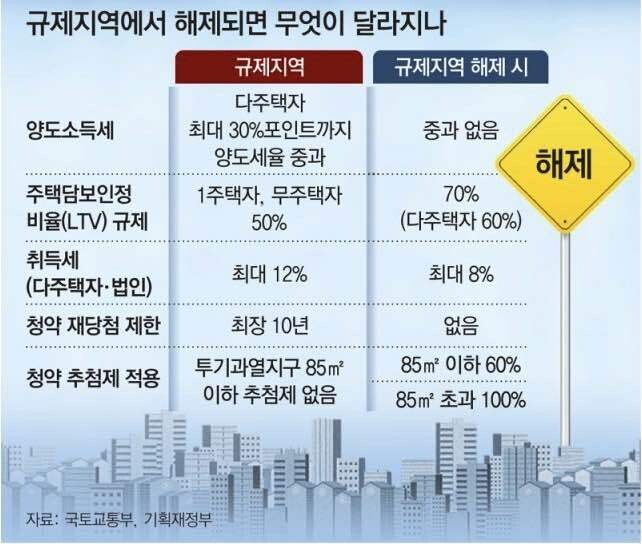 규제지역 해제 발표 양도세 취득세 효과