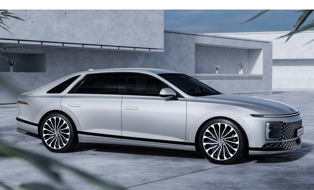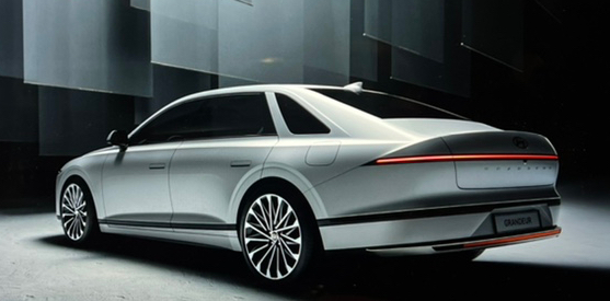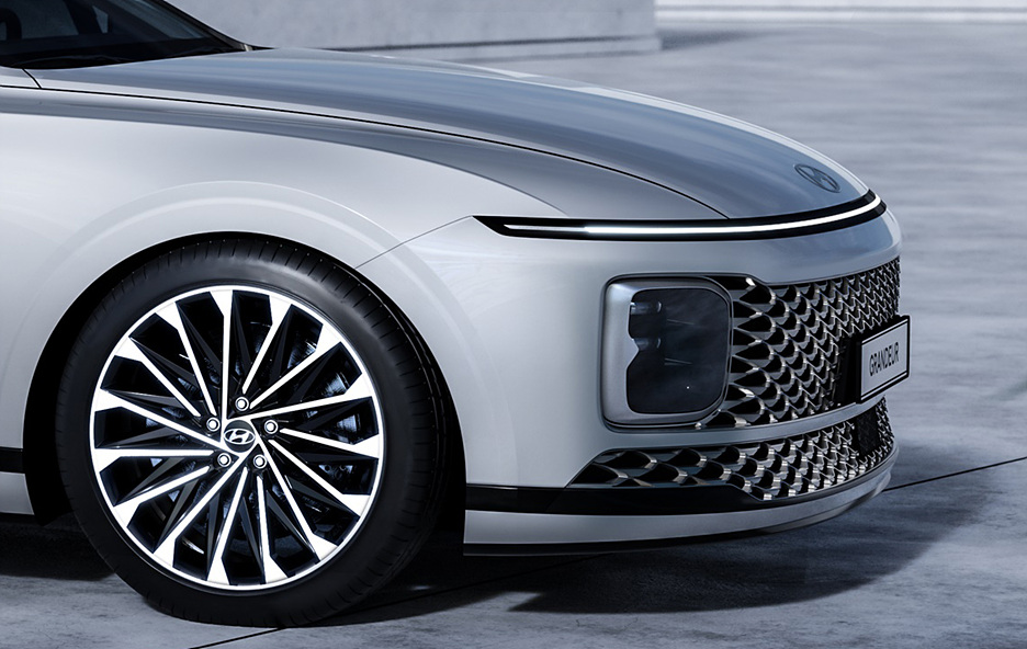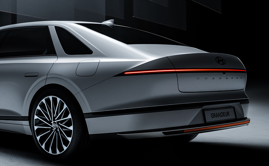 오페라 글래스는 1세대 그랜저, 프레임리스 도어 및 플래그타입 사이드미러는 3세대 그랜저가 연상되는 디자인이구요, 전면부 주간주행등과 리어램프, 분할형 헤드램프는 하나로 연결되었고 오토 플러시 도어 핸들, 최대 20인치 휠 등이 적용됐습니다.