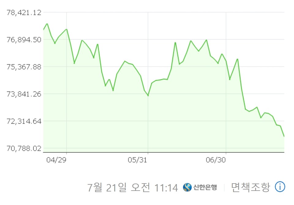지난 24일을 기준으로 가장 활발하게 거래되는 금 8월 인도분 선물가격의 경우 지난 22일 온스당 1727.40달러로 7월 들어 79.90달러, 즉 4.4%가 하락했으며 이는 2020년 11월 이후 가장 긴 4개월째 하락세라고 볼 수 있습니다.