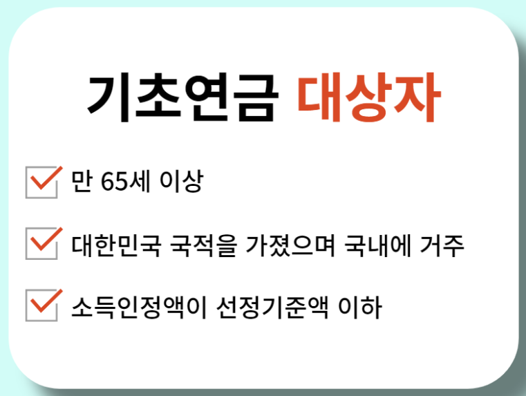 기초연금 수급자격은 대한민국 국적을 가진 국내에 거주중인 어르신 중 만 65세 이상으로서, 가구 소득 인정액이 선정기준액 이하인 분이 기초연금 수급자격이 됩니다. 정확하게는 만 65세가 되는 해의 태어난 날이 속하는 달의 1개월 전부터 기초연금 수급자격이 생기는 것이라고 보시면 됩니다.