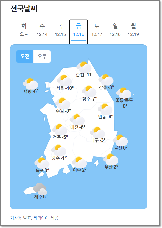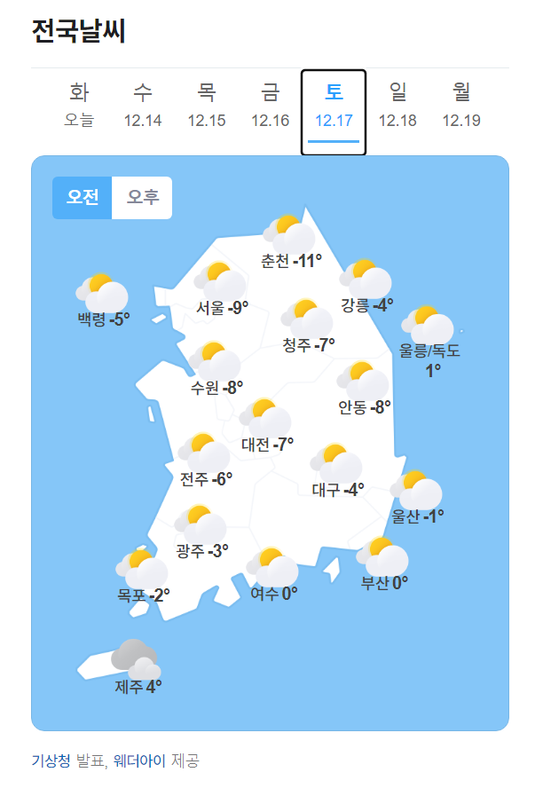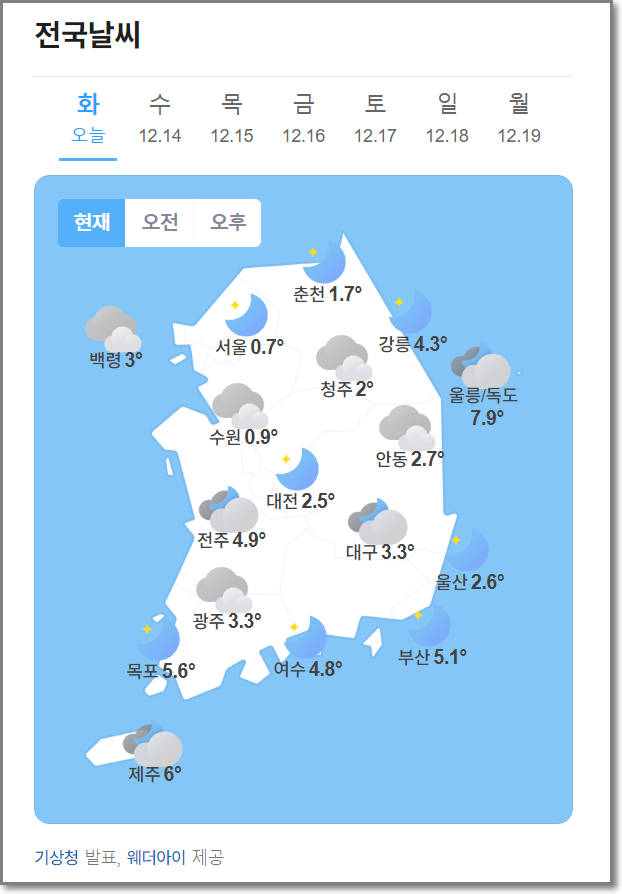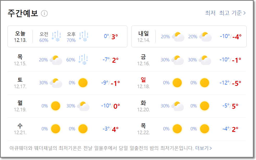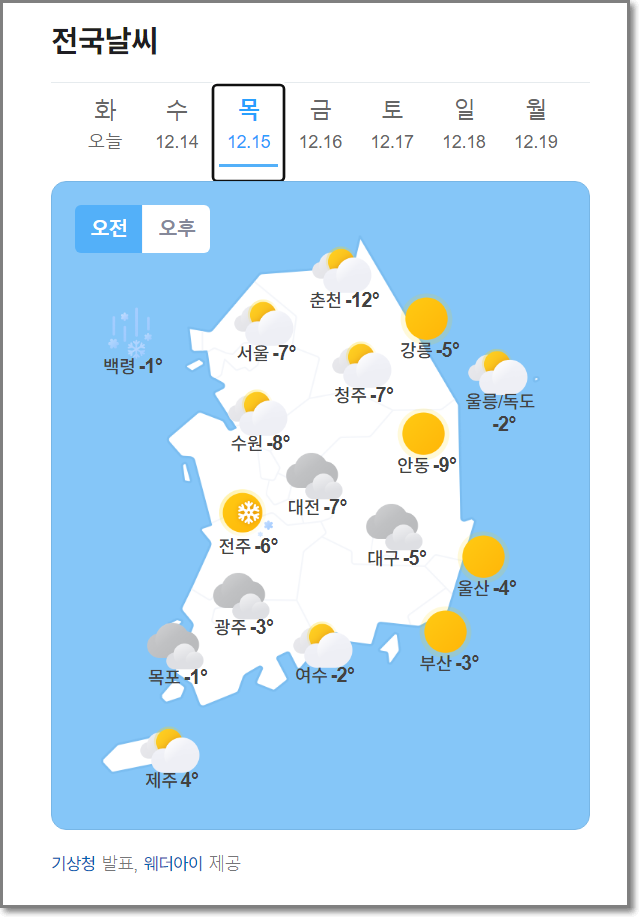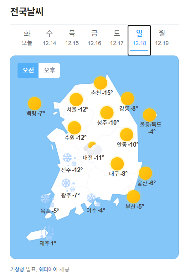 날씨 주간예보 12월 14일 ~ 12월 21일