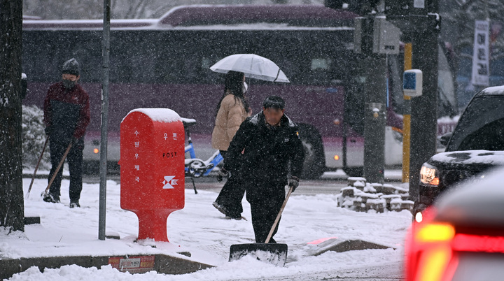 14일 오전까지 예상 적설량은 최대 10㎝ 이상이며 내일부터 모레까지 예상 적설량은 지역별로 다음과 같습니다.