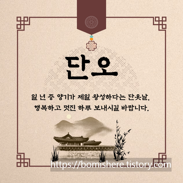 단오는 숫자 5와 5가 겹친 날이라 길일로 여겼다고 합니다. 오늘은 행운의 하루, 행복의 하루 되시길 바랍니다.