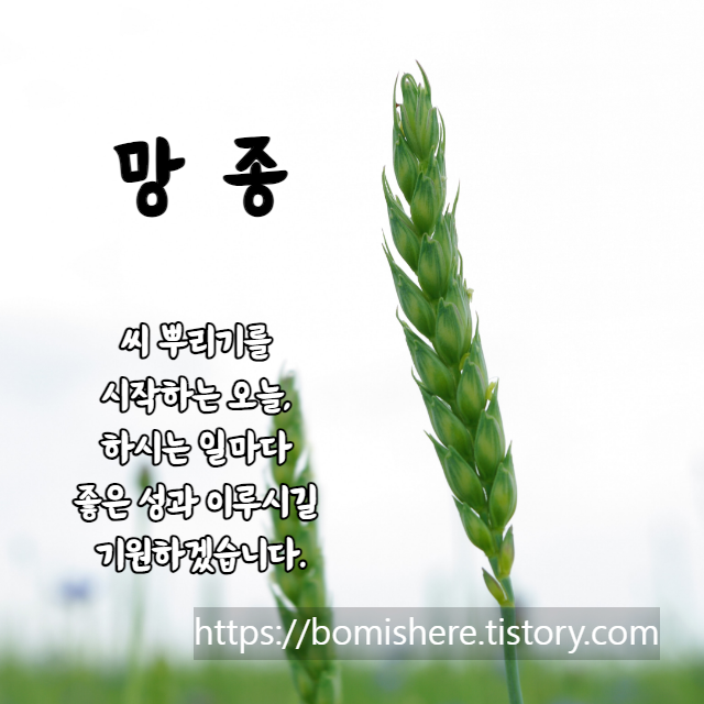 오늘은 절기상 망종 입니다. 씨 뿌리기를 시작하는 오늘, 하시는 일마다 좋은 성과 이루시길 바랍니다.