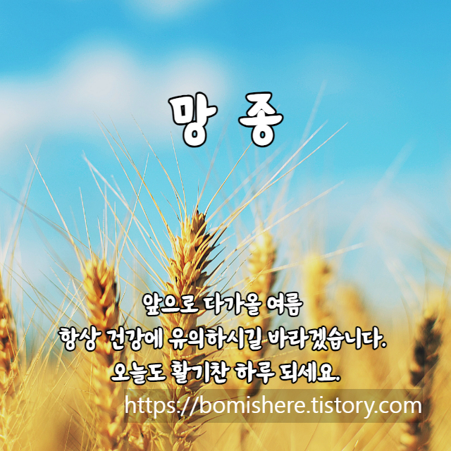 여름의 초입, 망종입니다. 망종에는 더 건강한 여름 보내세요.