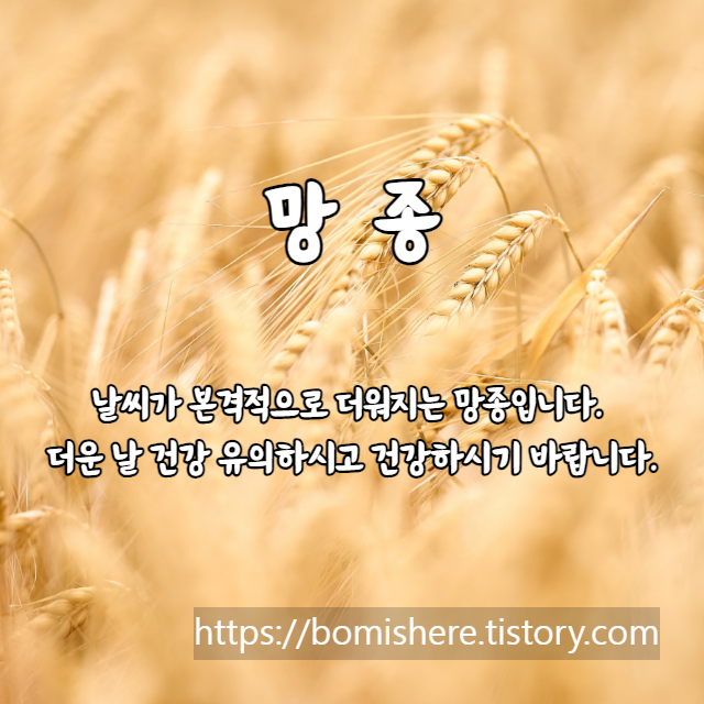 망종이 지나면 곧 하지가 찾아옵니다. 무더운 여름이 시작되는 시기, 항상 건강 조심하시고 더위에는 한박자 쉬어 가시는 여유있는 하루 되시길 바랍니다.