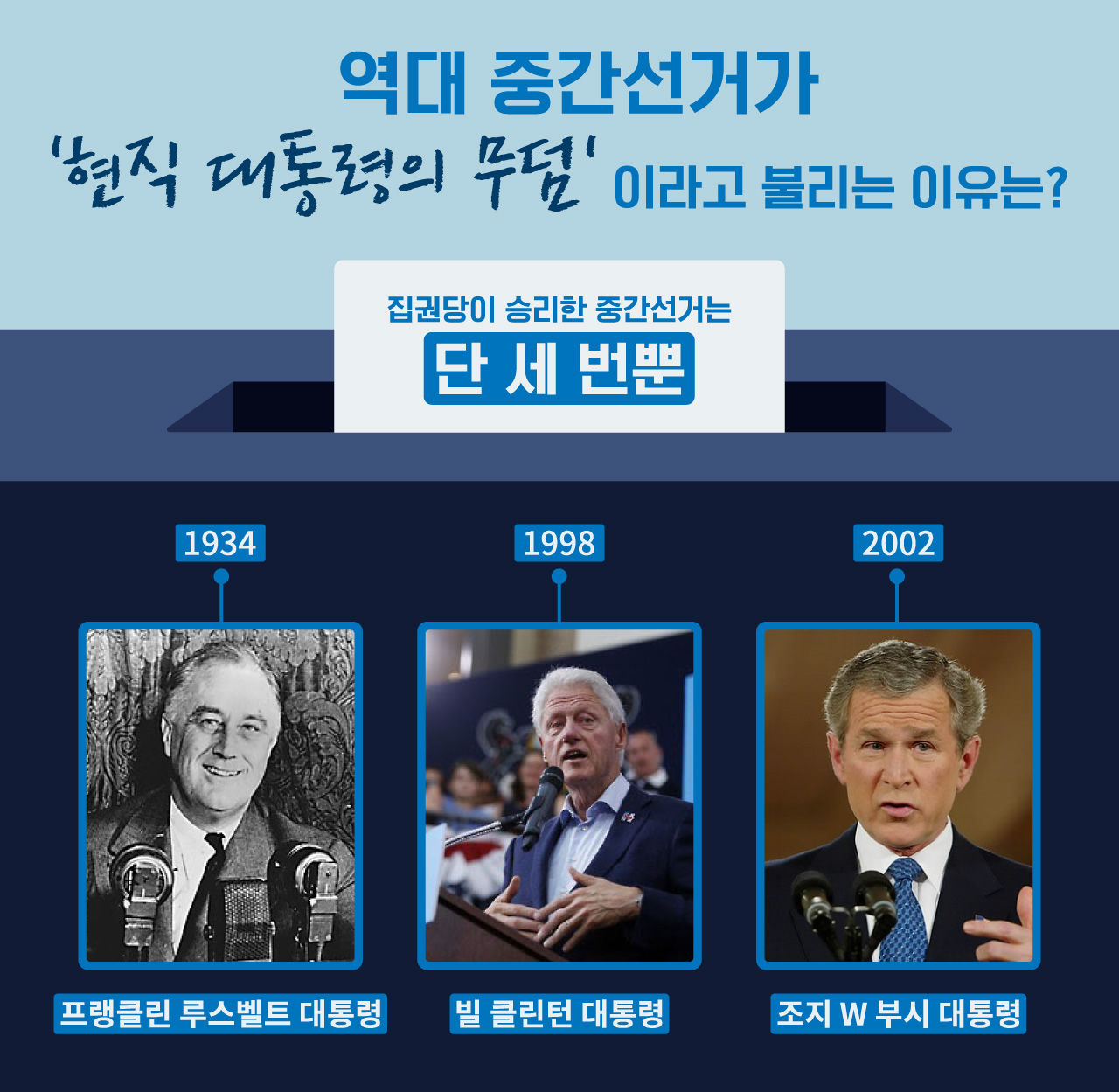 지금까지 대부분 중간선거에서는 집권당이 상, 하원 선거에서 의석을 많이 잃어왔기 때문에 현재 양원의 여야 의석 차가 그렇게 크지 않은 상황에서 집권당이 바뀔 수 있고 바이든 대통령 입장에서는 남은 임기 2년 동안 정책을 추진할 때 어려움을 겪을 수 있을 것입니다.