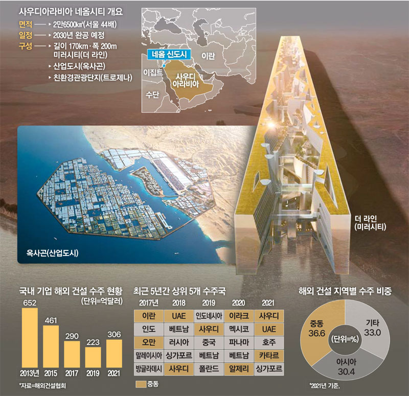 산악지대 관광특구 '트로제나'를 비롯하여 신재생에너지 도시 '더 라인', 그리고 해양 산업단지 '옥사곤' 등 미래 도시 건설에 우리 기업들이 수주를 노리고 있는 만큼 빈 살만 왕세자의 방한에 국내 기업이 어느 정도로 수주 기반 확대를 이룰 수 있을지 관심있게 지켜봐야 할 것 같습니다.