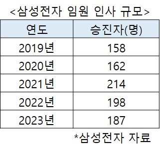 지난해 삼성전자 임원인사의 경우 198명(부사장 68명·상무 113명·펠로우 1명·마스터 16명)이 명단에 이름을 올렸었는데요, 올해 2023년 삼성전자 임원인사에서는 부사장 59명, 상무 107명, 펠로우 2명, 마스터 19명 등 총 187명이 승진되어 규모로만 따지면 소폭 줄었다고 볼 수 있습니다. 이에 관해서는 경영환경이 악화되면서 변화보다는 안정을 꾀하면서 위기를 극복하겠다는 전략이라는 분석이 나오고 있는데요, 일각에서는 여성 임원과 외국인 임원 승진 사례가 각 9명, 2명이고, 지난해 DS·DX 투톱 체제로 조직을 대대적으로 개편했다는 것을 감안하면 올해 인사폭이 절대 적지 않다는 분석도 나오고 있습니다.