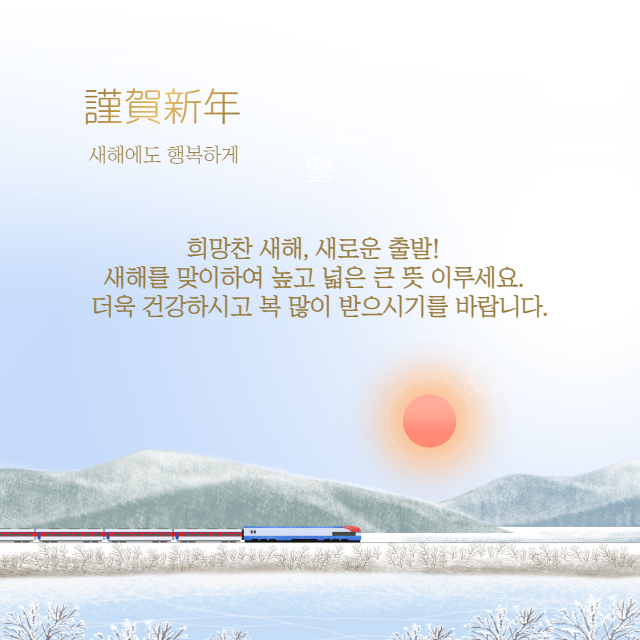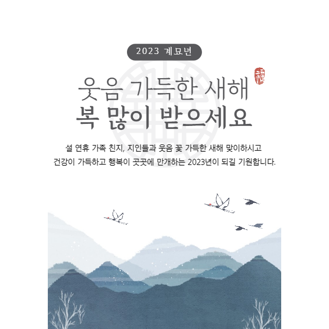 계묘년 새해 인사 전합니다. 올 한해도 하시는 일마다 날로 번창하고 뜻하신 모든 소원들이 모두 다 성취되시길 빕니다. 새해 복 많이 받으세요.