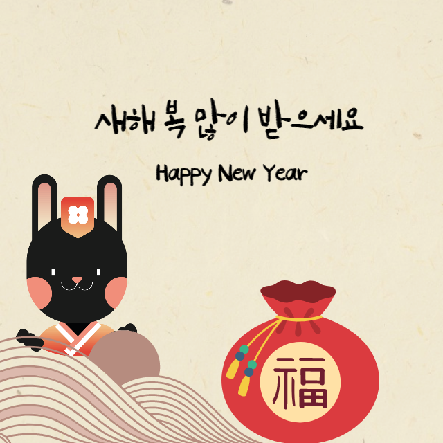 새해를 맞이하여 인사 드립니다. 2023년은 건강하고 밝은 한 해, 가정에 행복이 가득한 해가 되길 기원합니다. 새해 복 많이 받으세요.