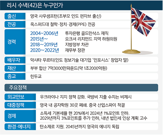 새 영국 총리 리시 수낵(42) 전 재무장관은 인도계 이민자 가정 출신이지만 학력과 경력 면에서는 보수당의 전형적 엘리트 코스를 거쳐온 것으로 평가받고 있습니다. 게다가 1980년 5월생으로 올해 만 42세라고 하는데 이는 1812년 로버트 젠킨슨(만 42년 1일) 이후 210년 만에 최연소 총리에 오르는 것입니다. 과거 데이비드 캐머런과 토니 블레어 전 총리가 취임 당시 44세였다고 하구요, 전임인 리즈 트러스는 47세, 보리스 존슨은 55세였으니 나이가 점점 어려지는 추세네요.