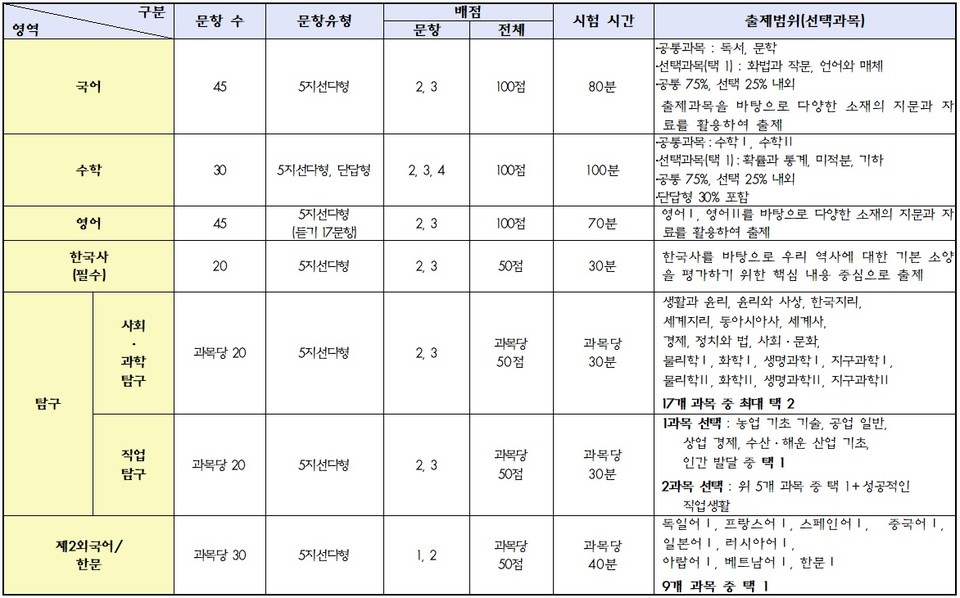 수능 당일에는 시험장 200m 전방부터 차량 출입이 통제되므로 자차로 이동한 수험생은 차에서 내려 걸어가야 하며 3교시 영어영역 듣기 평가가 진행되는 오후 1시 10분부터 35분까지는 소음이 발생하지 않도록 해야 합니다. 따라서 항공기·헬리콥터 이착륙 시간이 조정되며 포 사격·전차 이동 같은 군사 훈련도 잠시 중단됩니다.