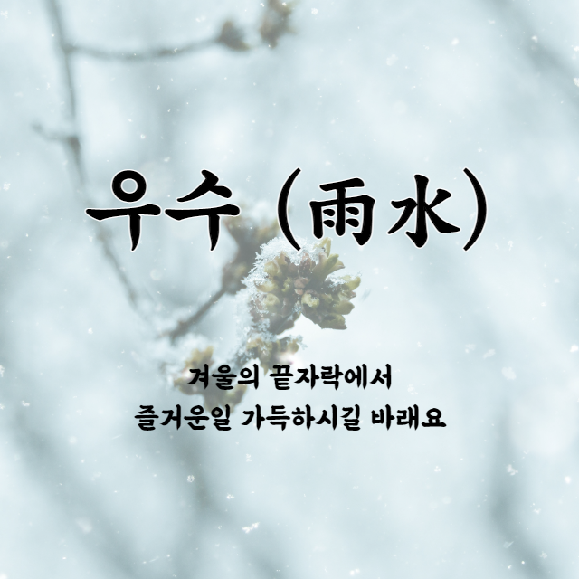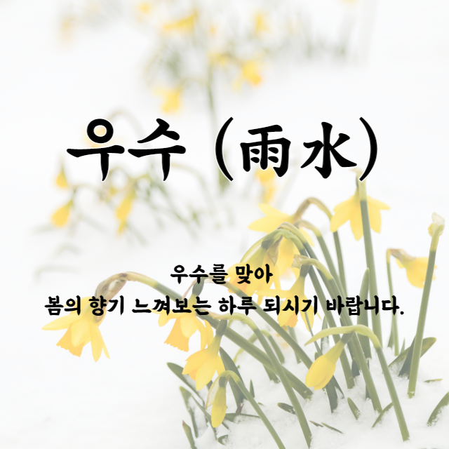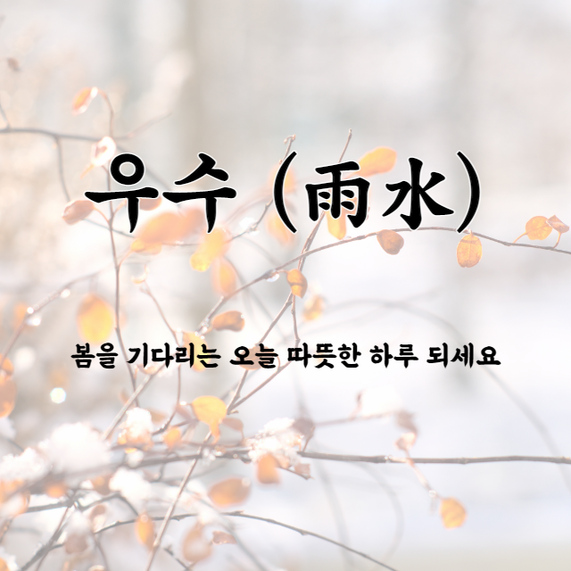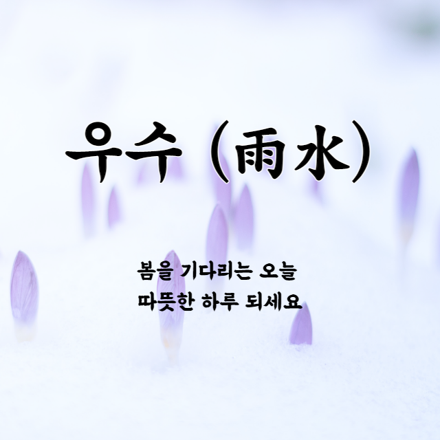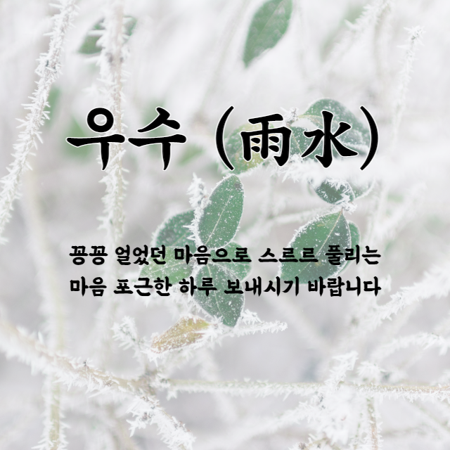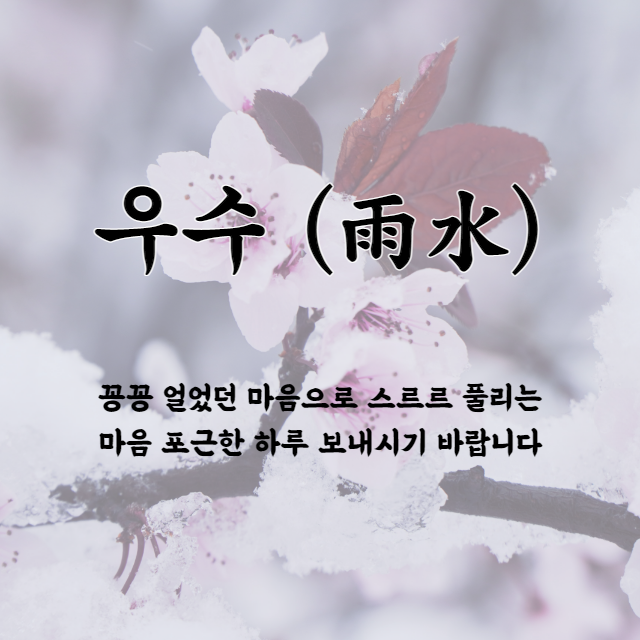꽃샘 추위가 찾아와도 우수를 맞이해 그간 얼었던 눈들이 모두 물처럼 스르르 녹아내립니다. 우수를 맞아 눈도 마음도 스스르 풀리는 따뜻한 하루 되시기 바랍니다.