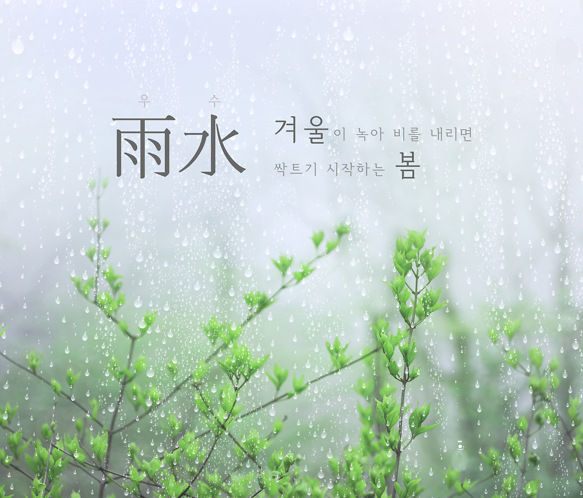 눈이 녹아서 비가 되는 절기 우수입니다. 손을 내밀어 보니 약속이나 한 듯 봄비가 내리고 있습니다. 보슬보슬 내리는 빗소리를 음악 삼아 재충전의 시간 되시길 바랍니다.