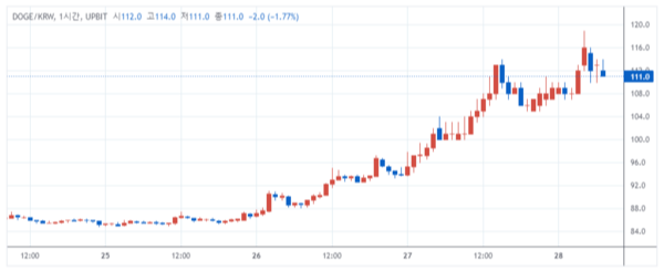 머스크의 트위터 인수가 마무리 단계로 접어들면서 도지코인은 이번 주 들어서만 가격이 30% 이상 뛰어오른 상황입니다. 27일 기준 오후 5시 36분 현재 도지코인은 0.08 달러에 거래되고 있는데 이는 24시간 전보다 가격이 10.13% 오른 수준입니다. 반면 같은 시간 가상화폐 대장주인 비트코인은 전날보다 1.82%, 이더리움이 2.45% 약세를 보였습니다.