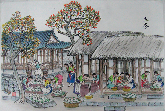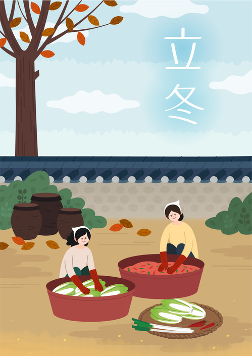겨울에 장만하는 김장은 특히 입동을 기준해서 하는데 김장을 입동 전 혹은 입동 직후에 하여야 제 맛이 난다고 한 이유는 입동이 지난 지가 오래면 김치가 얼어붙고, 싱싱한 재료가 없을 뿐 아니라 일하기가 어려웠기 때문이라네요. 옛날에는 입동이 되면 냇가에서 부녀자들이 무·배추 씻는 풍경도 쉽게 볼 수 있었다고 하는데요, 전라남도지방에서는 입동 날씨를 보고 그해 겨울 날씨를 점치기도 했다고 합니다.