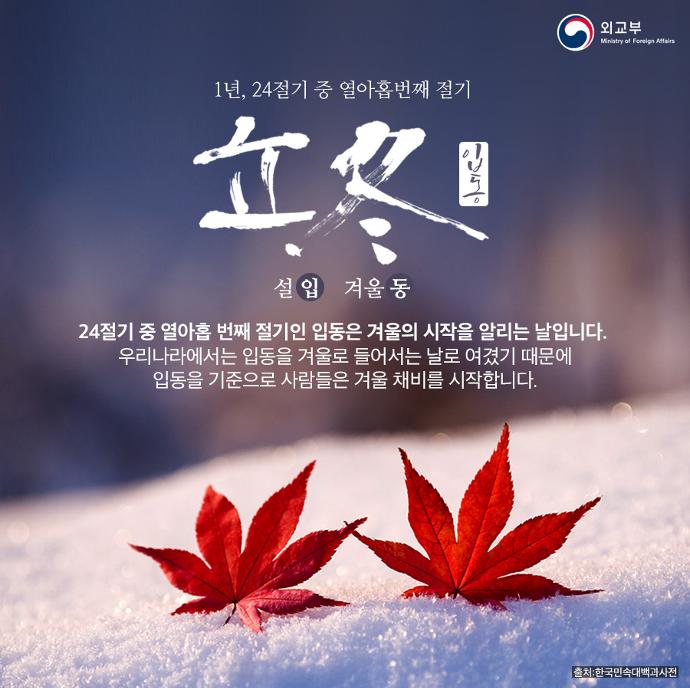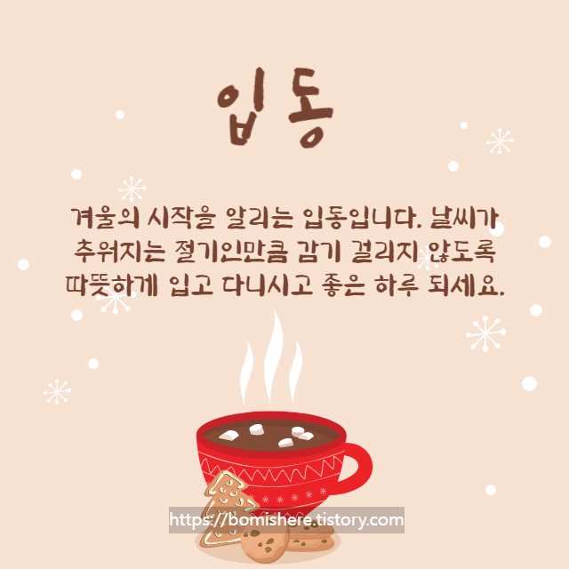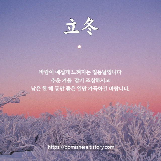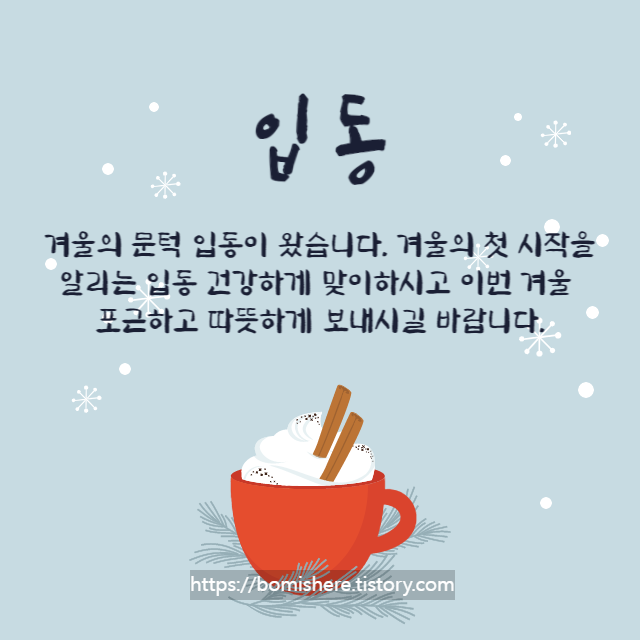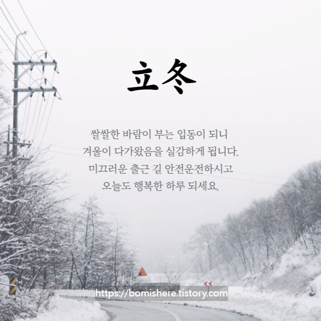 ※ 무료 이미지를 활용하여 직접 제작한 입동 이미지입니다. 개인적인 용도로 주변분들과 나누시는 것은 좋지만 개인 블로그나 카페에서 허락없이 사용한다면 엄중히 조치하도록 하겠습니다.