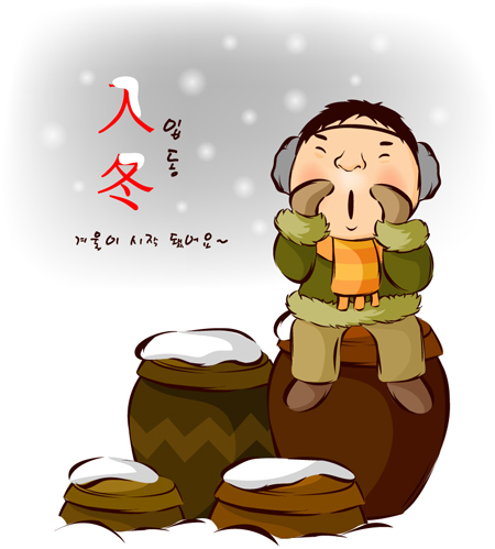 우리나라에서는 입동을 특별히 명절로 생각하기 보다는 입동 뜻 그대로 겨울로 들어서는 날로 여겨 겨울채비를 하기 시작하는 날이라고 볼 수 있는데요, 농촌에서는 입동 무렵이면 밭에서 무와 배추를 뽑아 김장을 하기 시작한다고 해요. 특히 입동을 전후로 5일 내외에 담근 김장 맛이 좋다고 알려져 있습니다.