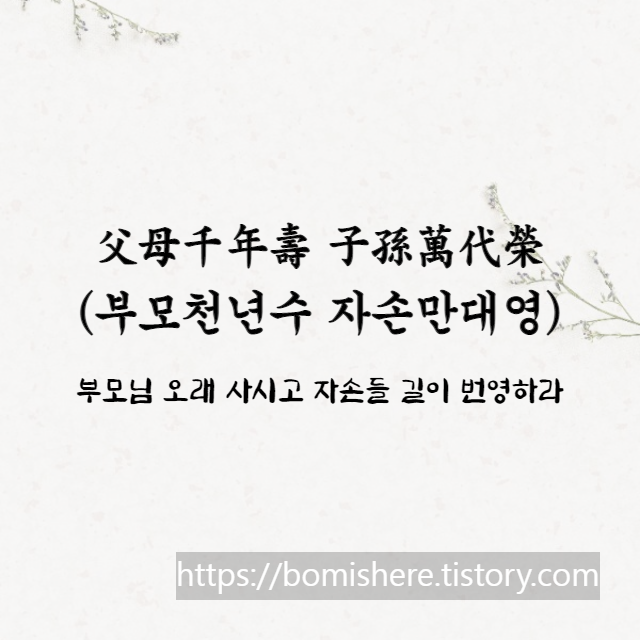 父母千年壽 子孫萬代榮(부모천년수 자손만대영)