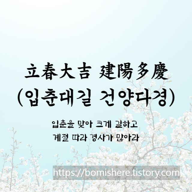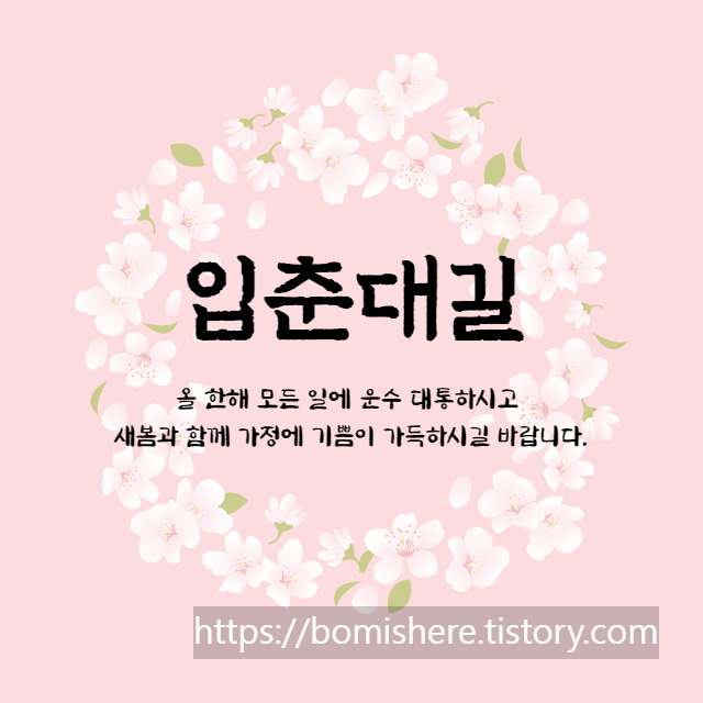계묘년의 첫 절기 입춘입니다. 봄이 문전에 왔으니 만사형통하여 재산이 넉넉해지고 지위가 높아지는 좋은 기회가 올 것입니다. 행복한 봄날 맞이하시길 바랍니다.