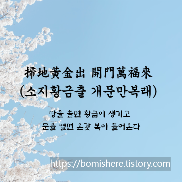 掃地黃金出 開門萬福來(소지황금출 개문만복래)