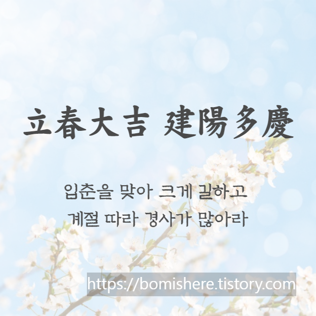 계묘년의 첫 절기 입춘입니다. 봄이 문전에 왔으니 만사형통하여 재산이 넉넉해지고 지위가 높아지는 좋은 기회가 올 것입니다. 행복한 봄날 맞이하시길 바랍니다.