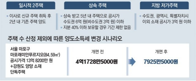 예를 들어 1세대 1주택자의 경우엔 기본 공제금액이 현재 11억원인데요, 양도소득세 고가 기준과 동일하게 12억원으로 높인다고 합니다. 또한 부세 납부 유예 제도도 그동안 60세 이상 고령 1주택자에게만 적용될 것으로 예상됐던 것과 달리 5년 이상 장기 주택 보유자에게도 확대 적용된다고 합니다.