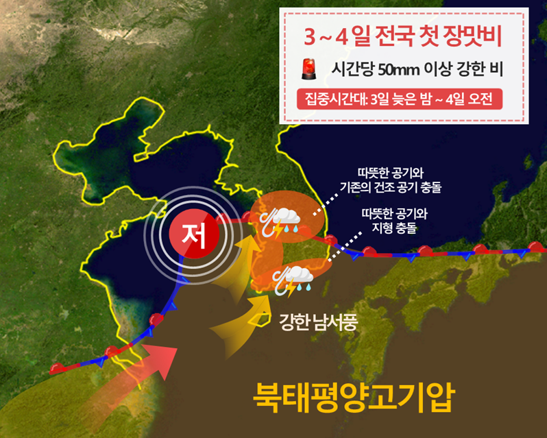 하지만 기상청은 이번 비는 일정한 패턴이 없기 때문에 장마라고 보지 않는다고 합니다. 보통 장마는 남쪽 열대성 기단과 북쪽 한대성 기단이 만나 생긴 정체전선으로 내리는 비라고 여기며 6월 하순부터 7월 중순에 집중되는 특징이 있습니다. 이 시간 내리는 비를 장마라고 보는 이유는 해마다 반복되는 패턴이 있기 때문입니다.