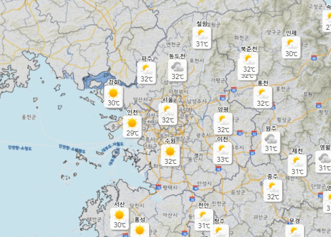 먼저 19일 날씨를 보면 한낮에는 어제만큼 더울 예정인데요, 서울이 30도, 대전 31도, 대구 32도까지 오르겠습니다. 특히 부산, 울산, 경상남도 대부분 지역의 일최고체감온도가 31도 안팎까지 올라 무더울 전망이며 전국 대부분 지역에서 더운 날씨가 이어지겠습니다.