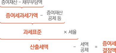 증여세를 계산하실 때에는 증여한 재산액에서 증여세 면제 한도액을 공제하고 남은 금액(증여세 과세표준)에 증여세율을 곱해서 계산하시면 됩니다.