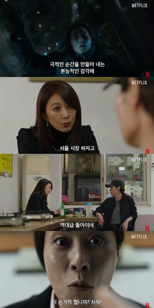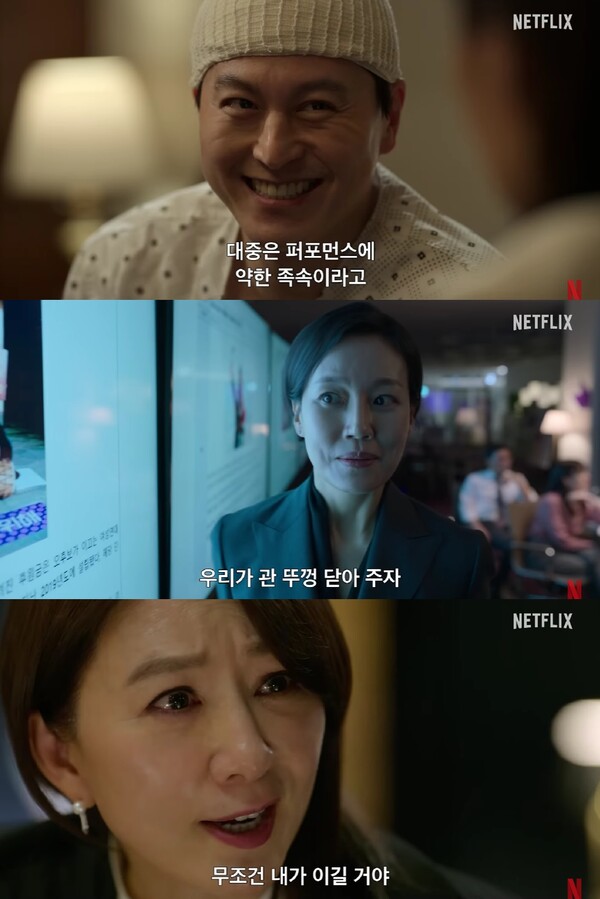더불어 퀸메이커 주요 등장인물인 황도희와 오경숙은 얼음과 불로 표현할 수 있다고 합니다. 황도희는 어떠한 경우에도 흐트러지지 않고 부서지는 과정에서 끝까지 녹지 않는 얼음의 이미지이고, 오경숙은 물불 가리지 않는 뜨거움, 불의 상징이라는 것입니다. 주변을 데우는 따스함이 있어 불과 얼음의 시너지가 모순적이고 어려운 과정임에도 김희애 문소리가 이를 어떻게 표현해냈을지 지켜보는 것도 퀸메이커 관전 포인트 중 하나가 될 것 같습니다.