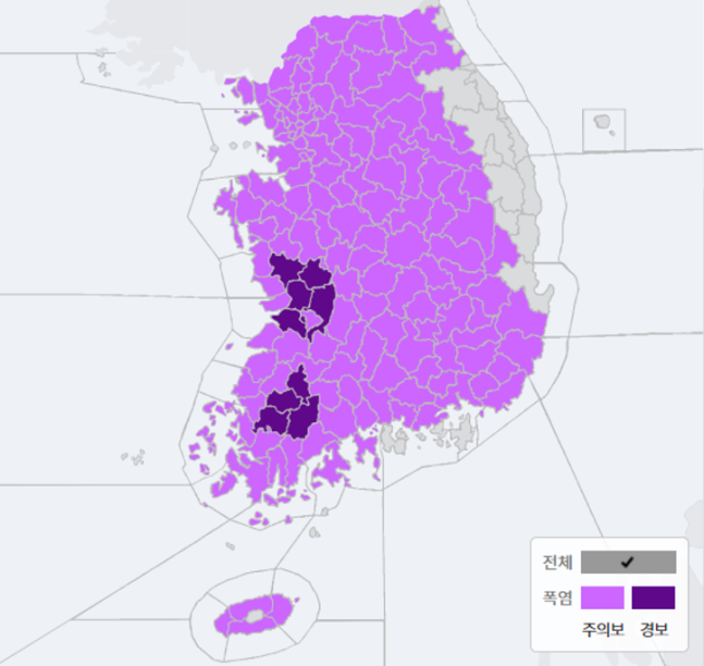 따라서 내일부터는 서울 등 수도권의 낮 기온이 34도까지 치솟는 등 내륙은 오히려 무더위가 더 심해질 것으로 보고 있습니다. 현재 서울에는 폭염주의보가 내려진 상황인데 내일부터는 폭염경보로 강화될 것 같다는 소식입니다.