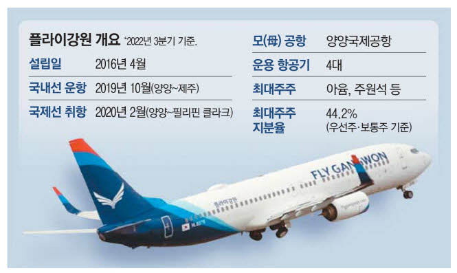 플라이강원은 2016년 설립된 저비용항공사(LCC)로 설립 3년 뒤인 2019년부터 상업 운항을 시작했습니다. 하지만 이듬해 바로 코로나가 발생하는 바람에 경영 상황이 급격히 악화하기 시작했다고 볼 수 있는데요,