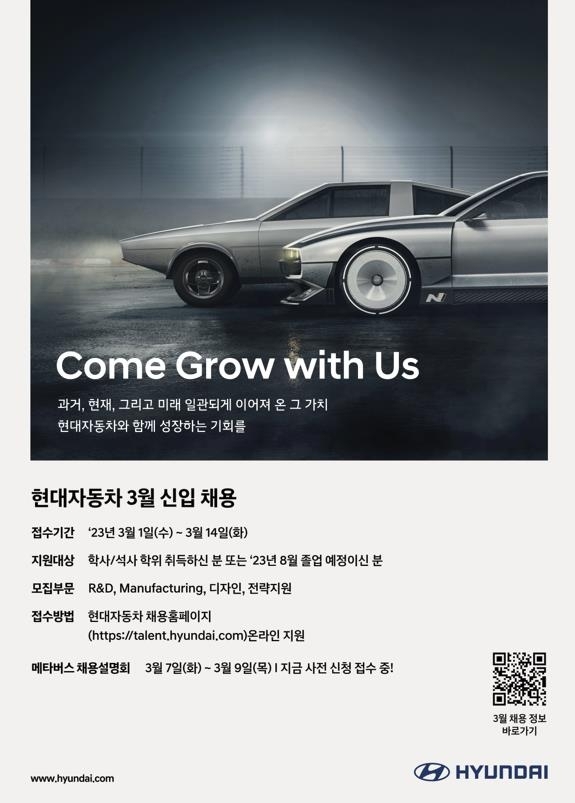 현대차 2023년 상반기 기술직 신입사원 700명 채용(상반기 400명채용, 하반기 300명 채용 - 24년초 배치)