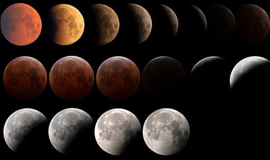 4. 이어 달이 서서히 그림자에서 벗어나며 밤 9시 49분부터는 본래의 모습을 되찾게 되며 개기월식은 오후 8시 41분 54초에 끝나게 됩니다. 달이 지구 그림자에서 빠져나오는 부분월식을 거쳐 오후 10시 57분 48초에 월식의 모든 과정이 끝나게 되는 것인데요, 개기월식이 일어나도 달 전체가 눈앞에서 아예 사라지는 것은 아니고 일부는 보이게 됩니다.