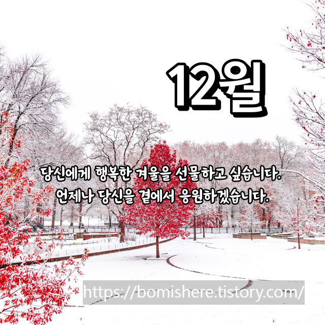 "겨울의 매력과 연말연시의 기쁨을 선사하는 12월이 다가왔습니다. 멋진 한 달을 보내시길 기원합니다!"