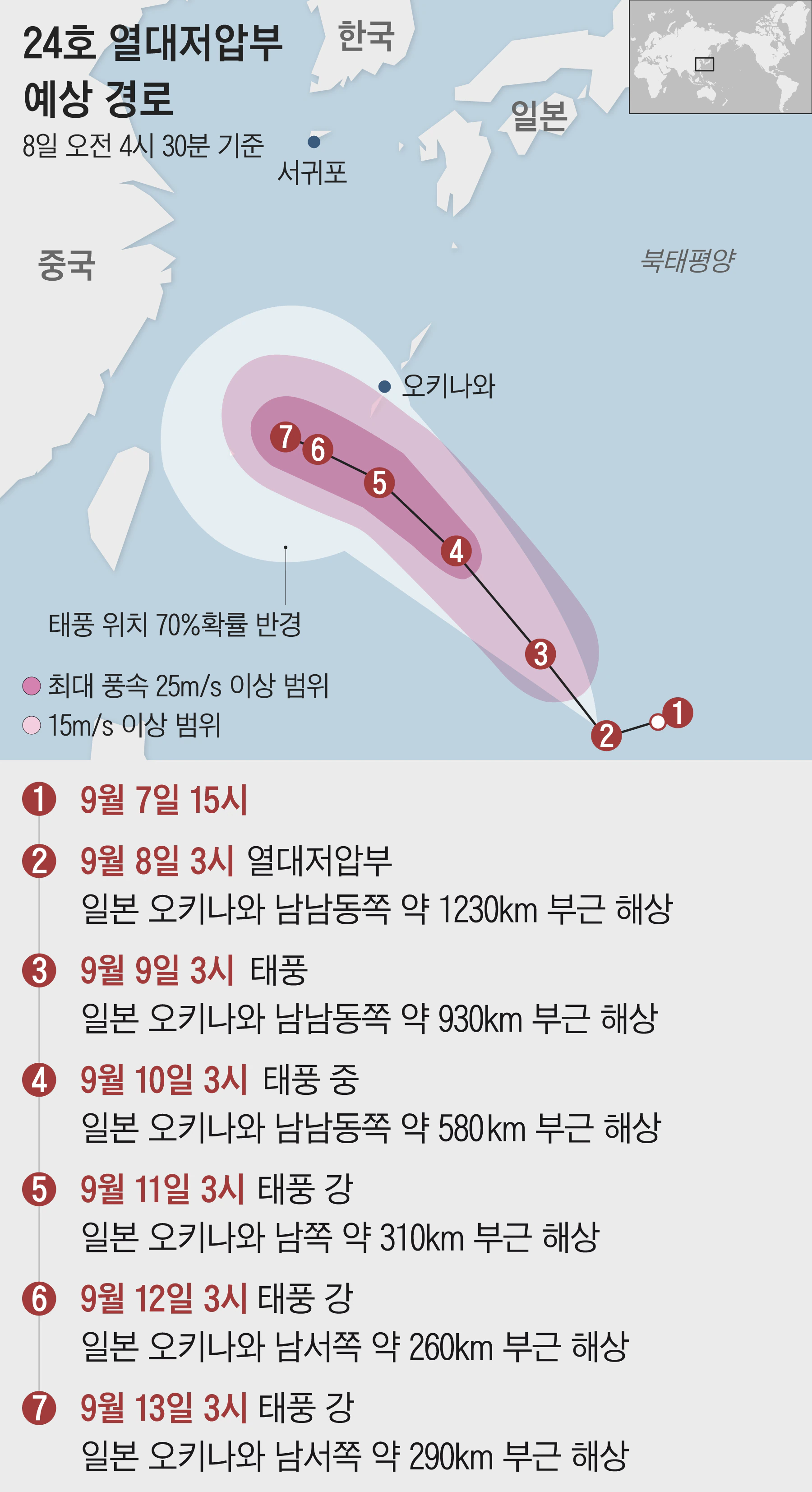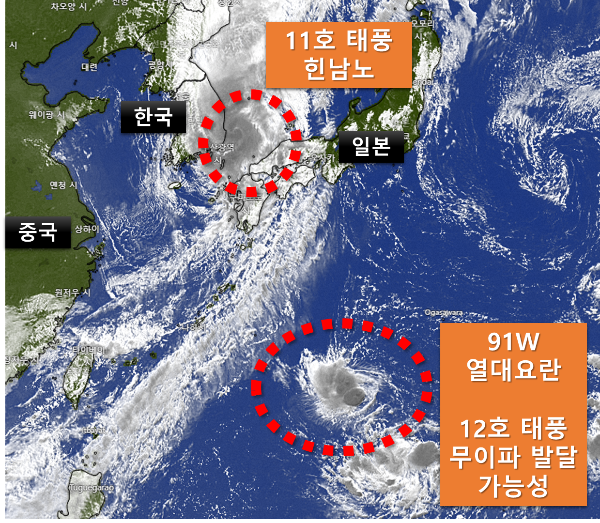 - 9일 9시 : 일본 오키나와 남남동쪽 약930km부근해상