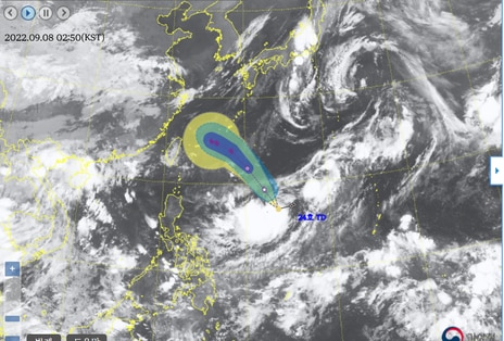 2022년 12호 태풍 무이파 예상 경로와 현재위치를 살펴보면 다음과 같습니다. (9일 0시 기준)