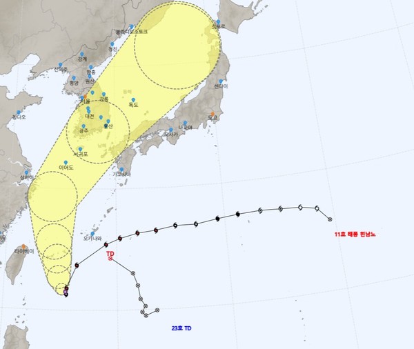 - 11일 21시 : 일본 오키나와 남서쪽 약380km부근해상