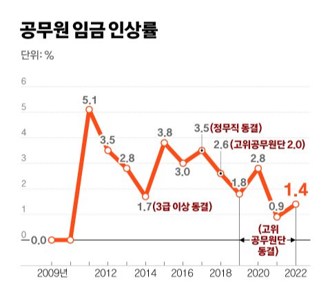 2022년 공무원 봉급표 (실수령액)을 간단하게 정리해 보도록 하겠습니다. 최근 행정안전부의 발표에 따르면 앞으로 공무원 정원을 매년 1%씩 줄여 임기 내 약 5만8000명의 공무원 인력을 감축할 것이며 공무원 임금인상률은 1.7~2.9% 정도 수준으로 결정하는 것을 고려중이라고 합니다.