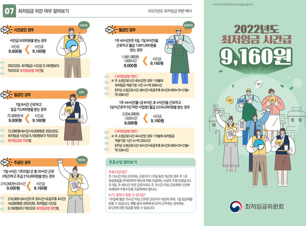 2022년 최저임금 최저시급 주의사항