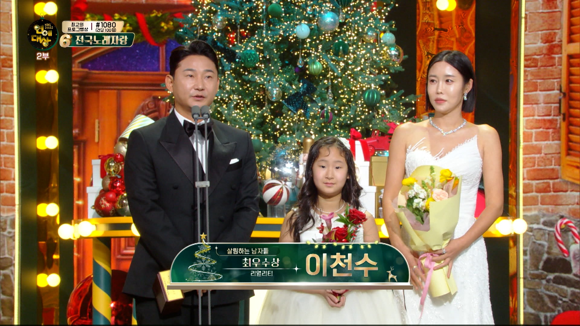 2022년에 리얼리티 부문 최우수상을 받았으며 올해 〈살림하는 남자들〉에 출연하고 있습니다. 이천수는 처음으로 단독 대상 후보에 올랐는데 프로그램의 시청률이 3% 대에 머물고 있고, 개인 논란이 있어 평이 갈리는 모습입니다. 역시 올해 대상 수상 가능성은 낮은 편입니다.