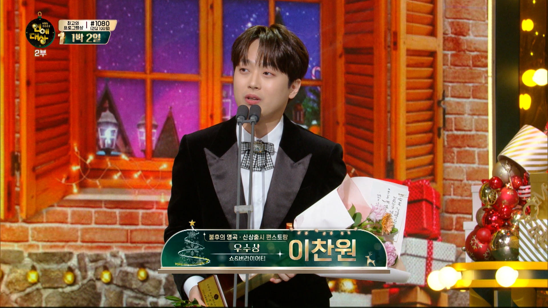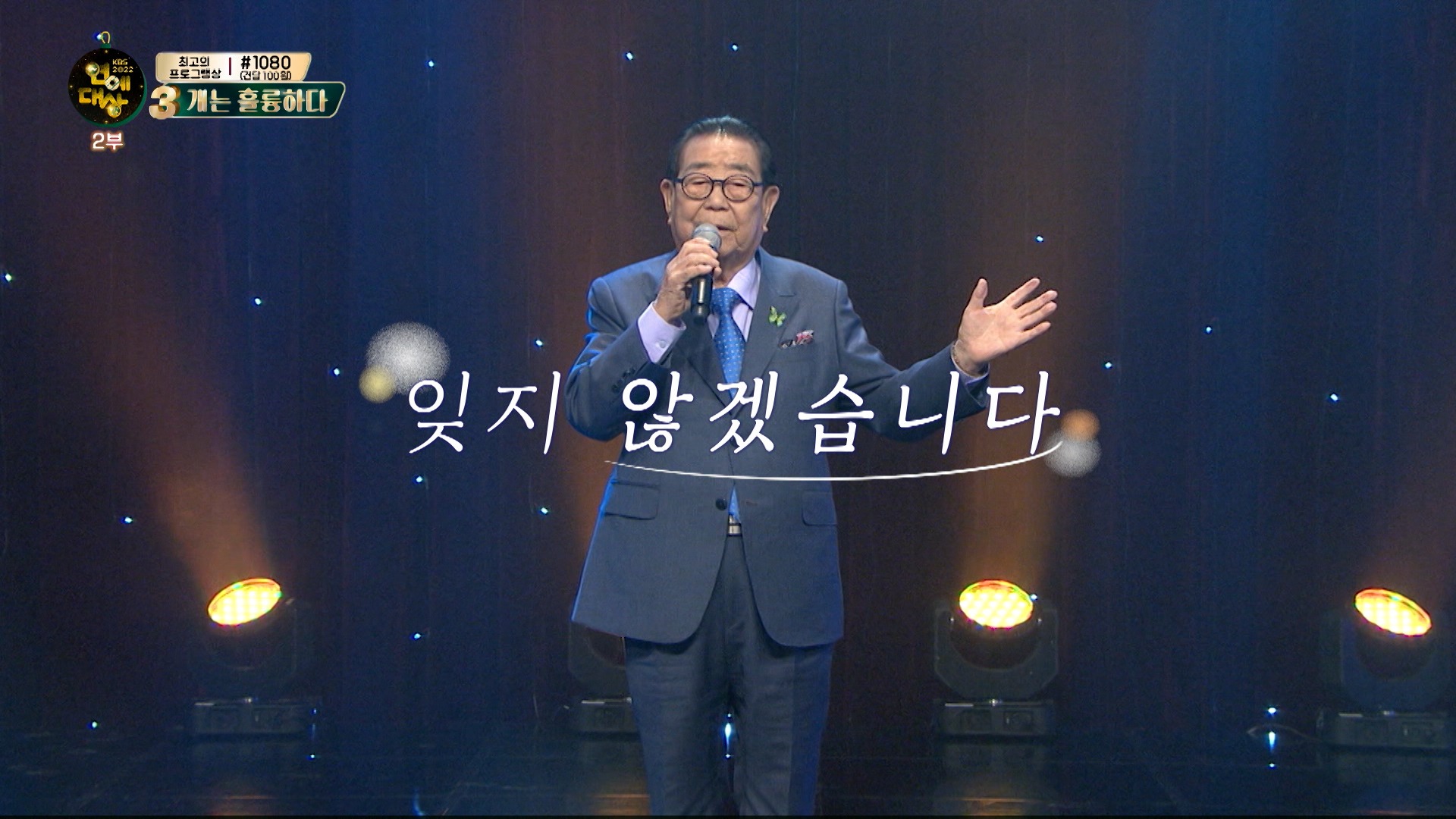 2022년에 대상을 받았는데 올해도 역시 〈불후의 명곡〉을 진행했습니다. 작년 대상을 수상하면서 10년 주기 대상설을 증명하기도 했습니다만, 올해는 연속 수상 징크스에 걸리는 데다 프로그램의 평균 시청률이 지난 해보다 낮은 상황입니다. 시청률 외 화제성 면에서도 여전히 좋지 못한 모습을 보이고 있다는 평가가 나와 대상 수상 가능성은 역시 낮은 편입니다.