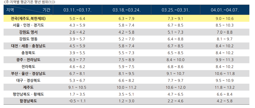3월 날씨 전망 첫째주 날씨