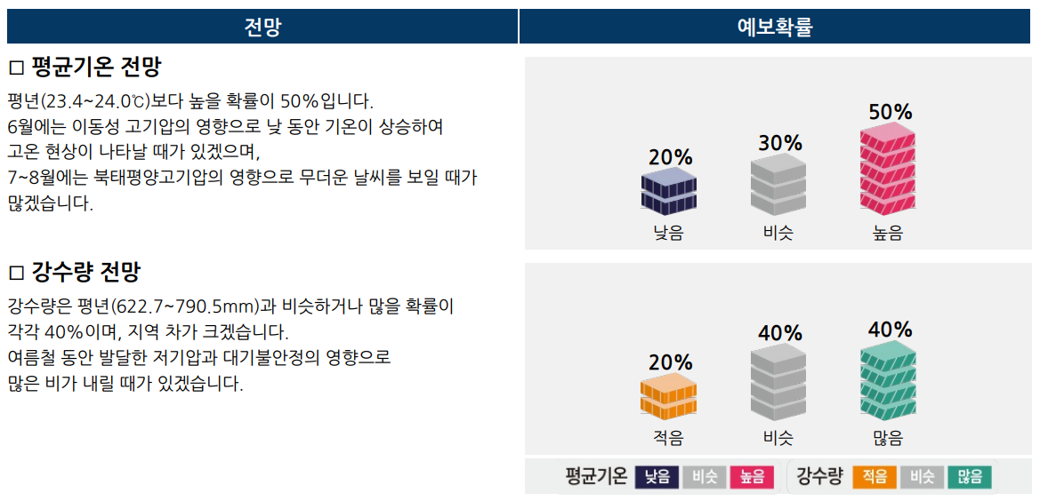 (주평균기온) 평년(6.3~7.9℃)과 비슷하거나 높을 확률이 각각 40%입니다.