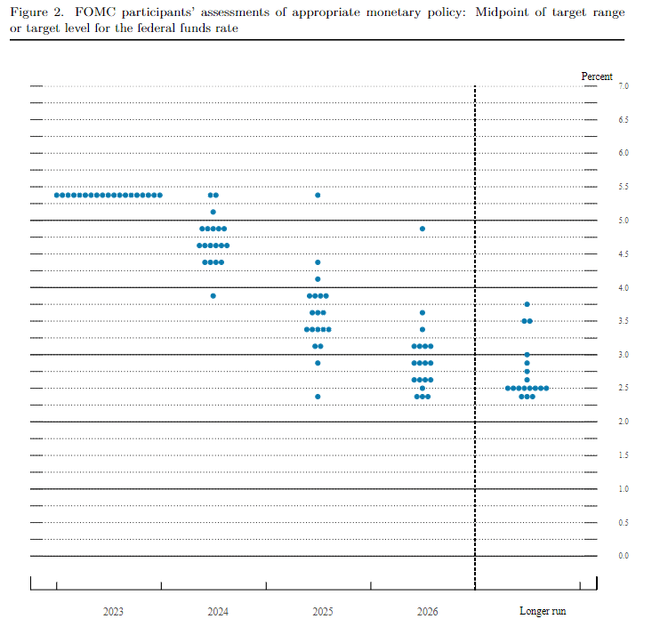 올해 시장이 금리 인하 기대를 본격적으로 품게 된 계기는 여전히 추가 금리 인상을 예상하는 목소리가 시장 일각에 남아 있을 때인 지난해 12월 열린 FOMC 자리였습니다. 당시 파월 의장은 “물가가 2%로 떨어지기를 기다렸다가 금리를 인하하면 너무 늦다”고 발언했는데요, 시장은 이를 연준의 조기 금리 인하로 받아들였고, 미국 증시가 날아올랐습니다. 시카고상품거래소(CME) 페드워치에서는 올해 금리 인하 횟수를 최대 7번까지 전망하기도 했지만 사실상 당시 연준의 점도표 중위값이 금리 인하 3번에 불과한 것으로 나타났습니다.