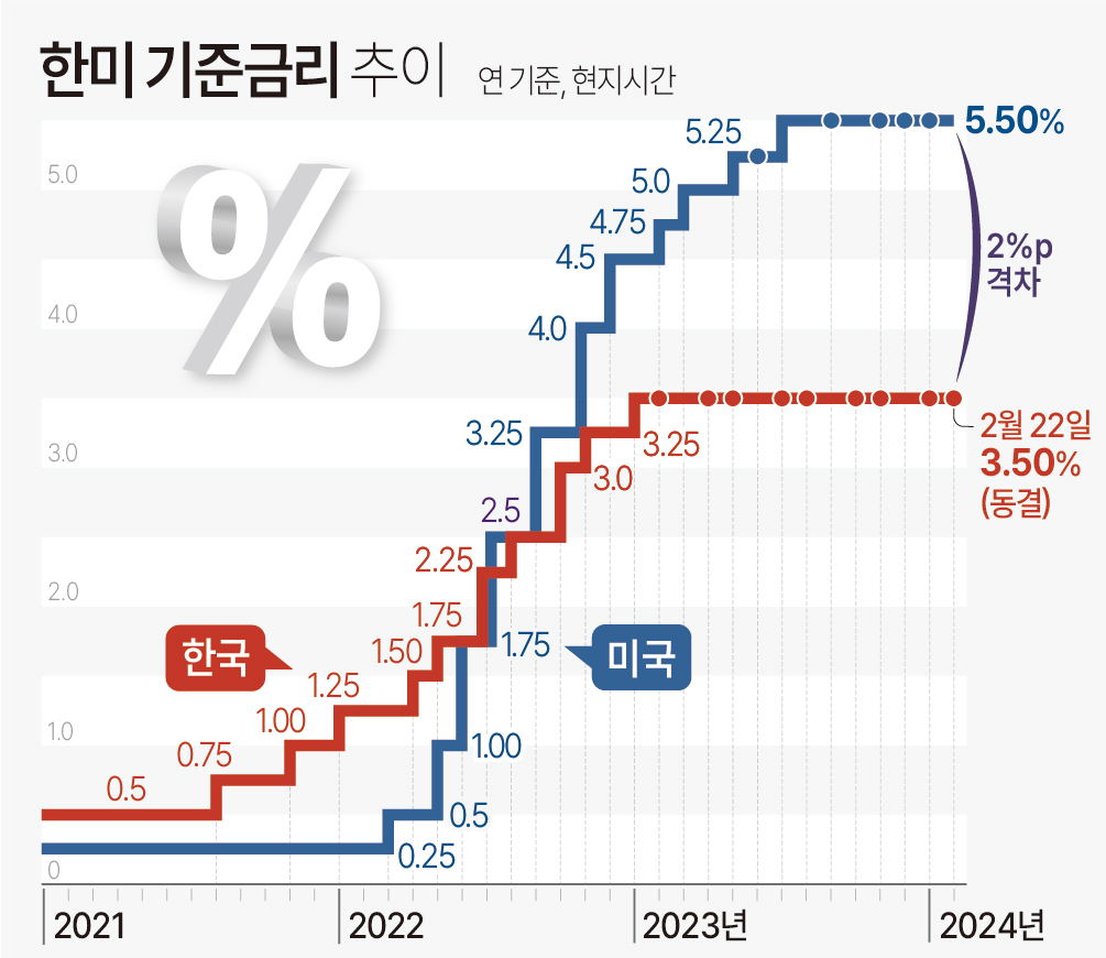 이르면 3월 금리인하 예상은 5월, 6월로 차례차례 늦춰지고 있고, 미국의 2월 소비자물가지수(CPI), 생산자물가지수(PPI)가 발표되자 결국 3차례 금리인하로 후퇴한 상황입니다.