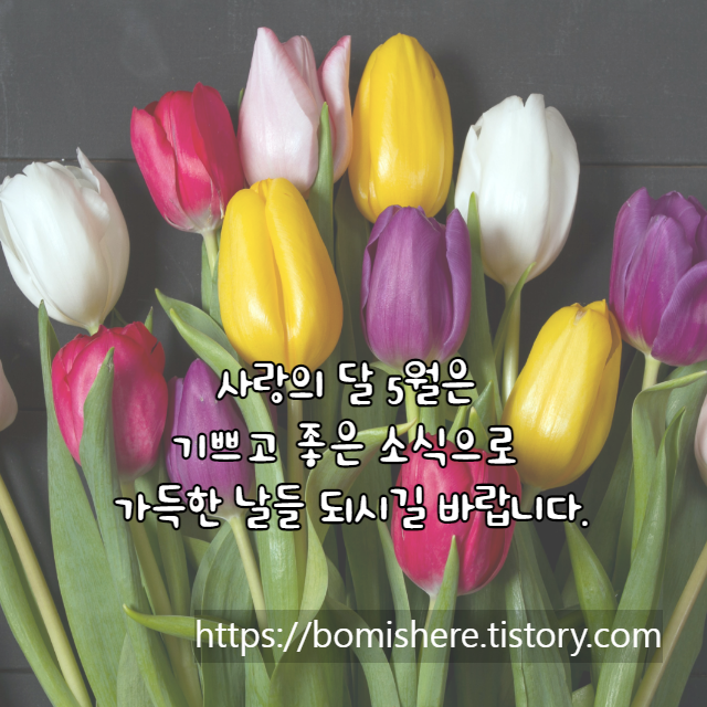 어느새 4월이 훌쩍 지나가고 5월이 다가왔습니다. 하루하루 시간이 빨리 흘러감을 느낍니다. 5월에는 가정의 행복과 행운이 깃들어 있기를 기원합니다.