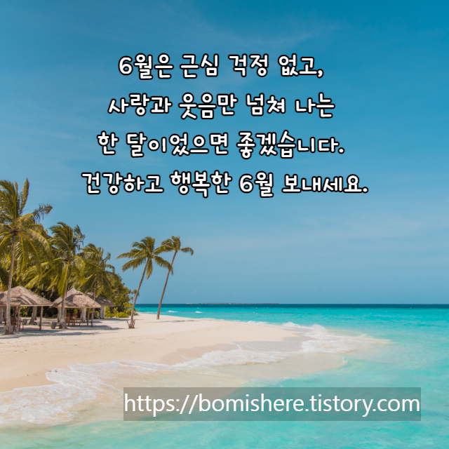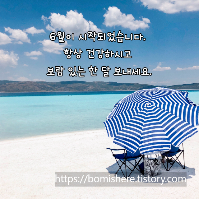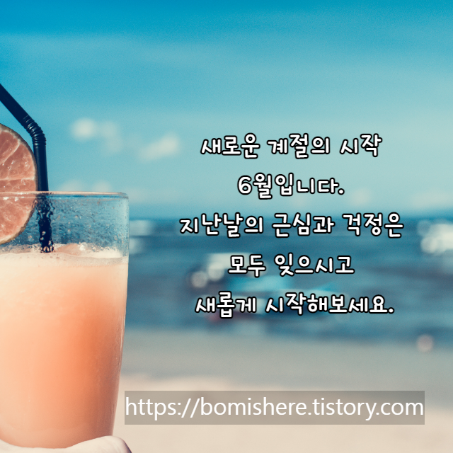 한 해의 반을 마무리하는 중요한 달 6월입니다. 6월은 근심 걱정 없고, 사랑과 웃음만 넘쳐 나는 한 달되시기를 바랍니다. 건강하고 행복한 6월 보내세요.